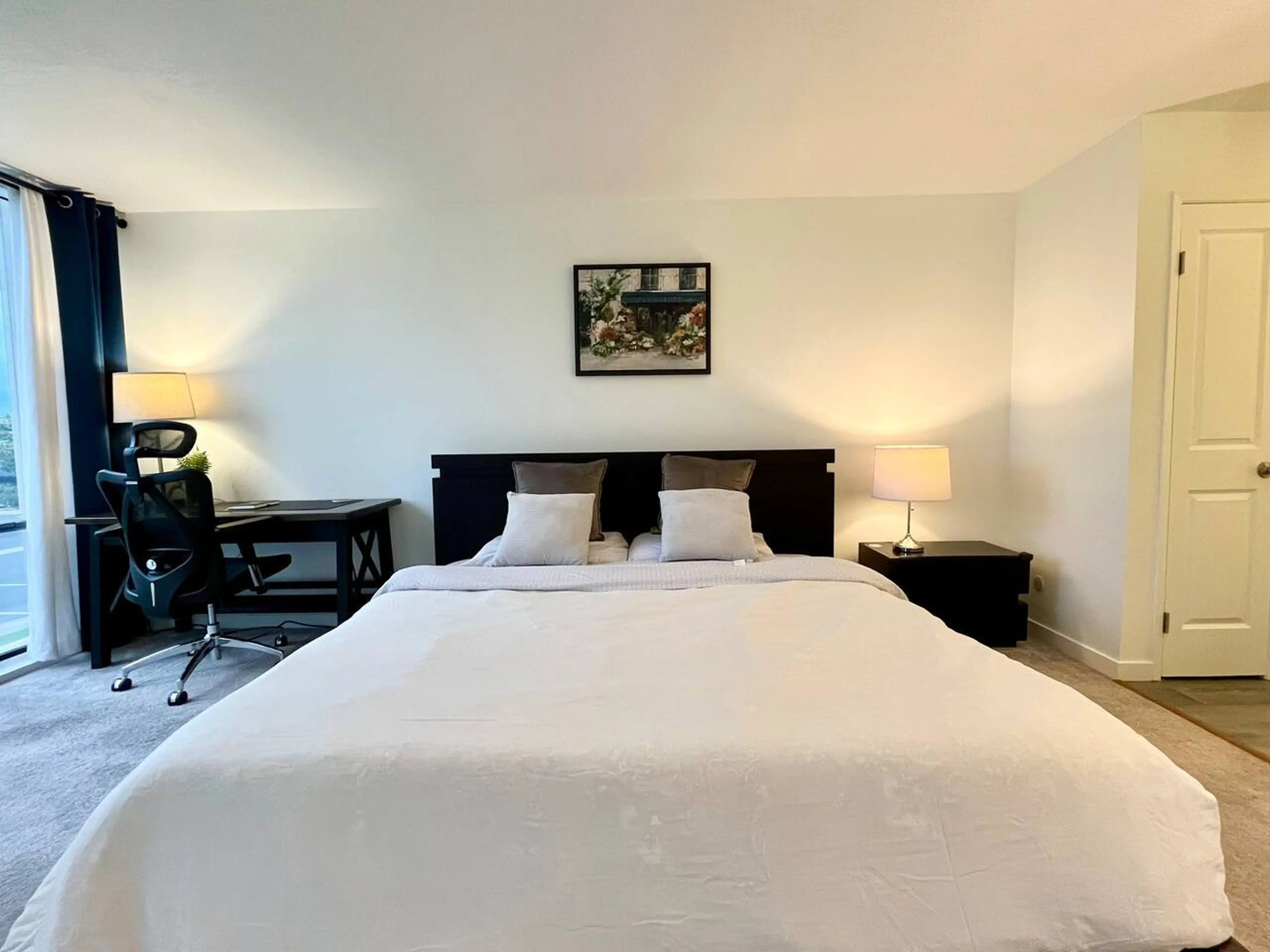 Modern 2BR/2BA residence designed for comfortable mid-term stays. King suite plus second bedroom with full bed offers flexible living for work or family. Walk to Ranch 99, restaurants, and daily essentials. Quick access to freeways, parks, and waterfront trails. Located near major tech campuses and ...